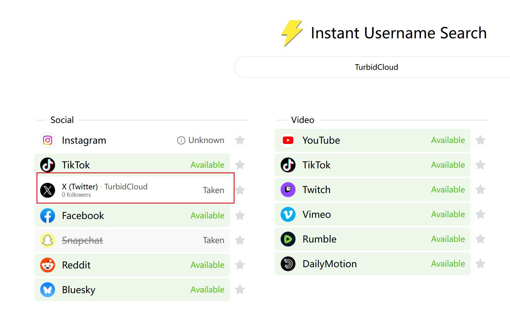 思路转向在 namemc 查到的曾用名,尝试 TurbidCloud,使用 https://instantusername.com/ 来检索其他社媒,检索到了Twitter